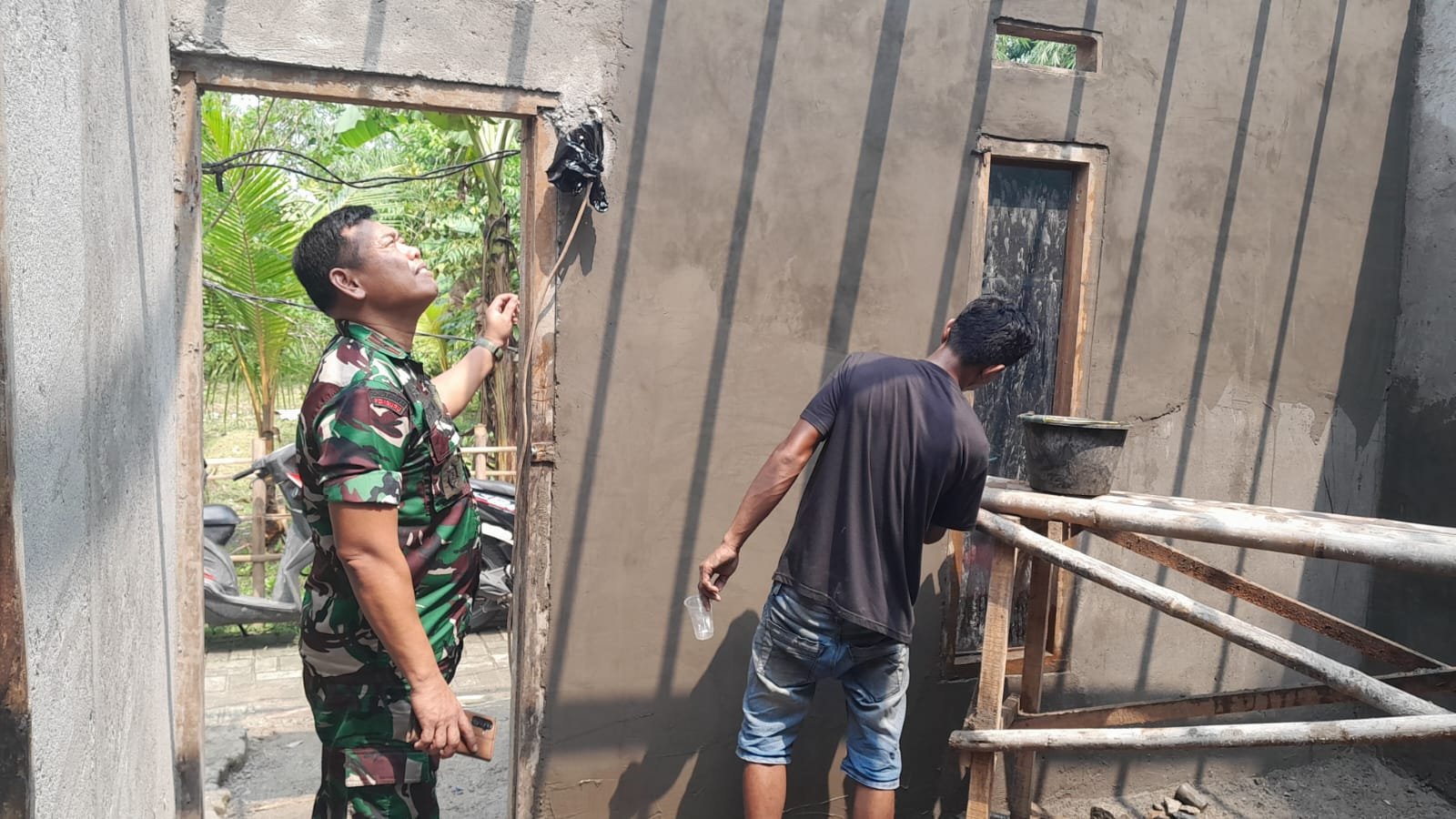 Danramil 04/Cikupa Mayor Cke Sutisna, Kamis (02/04/2026) menjelaskan, program gentengisasi di wilayah Koramil 04/Cikupa, Kabupaten Tangerang sudah masuk pengerjaan plaster tembok dan pasang tulang atap.