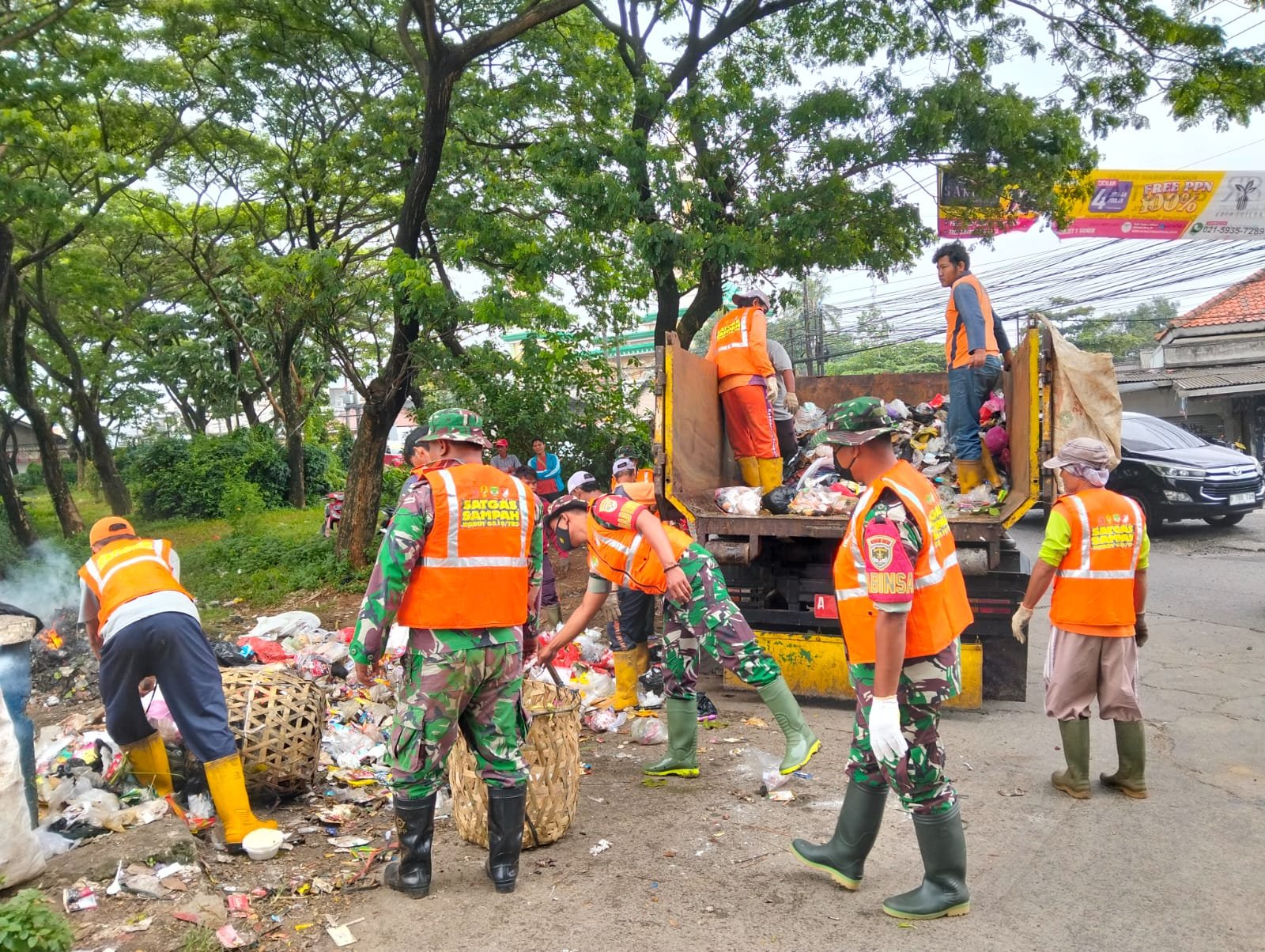tintaindependen.com, Kodam Jaya, Tigaraksa – Babinsa Koramil 10/Sepatan, Kodim 0510/Trs bersama warga masyarakat dan DLH Kabupaten Tangerang peduli lingkungan laksanakan aksi pungut sampah di Jalan Raya Mauk, Kampung Cadas Desa Karet, Kecamatan Sepatan Kabupaten Tangerang, Minggu (05/04/2026).