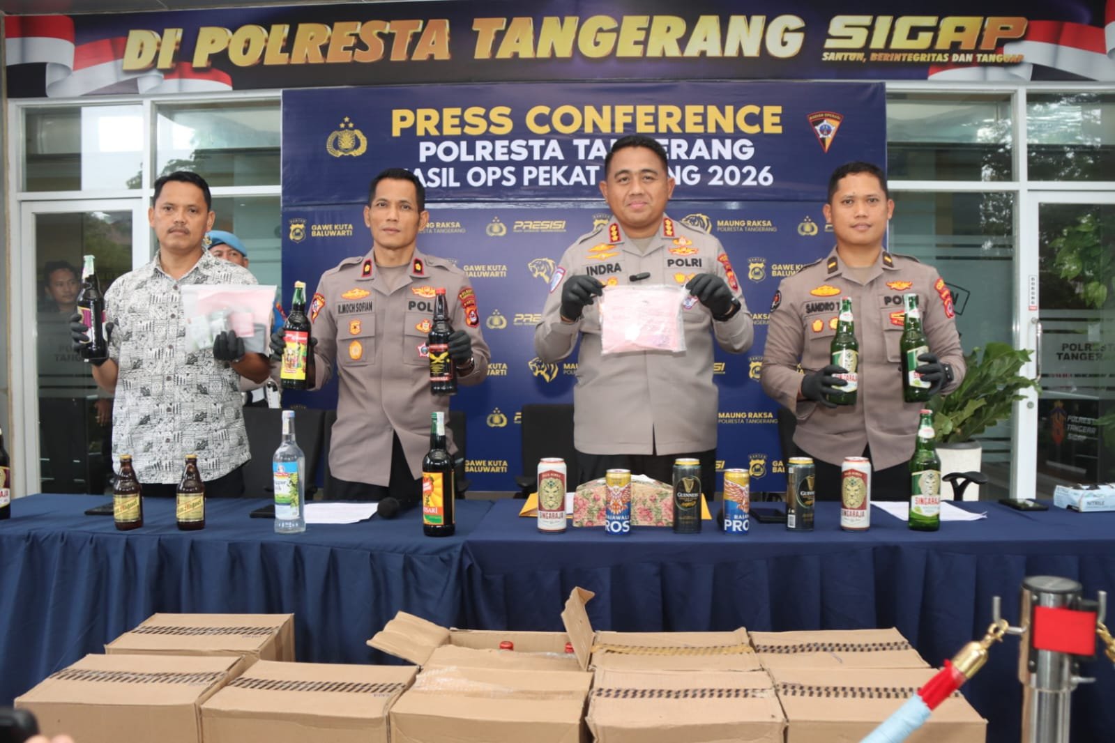 tintaindependen.com Tangerang, – Polresta Tangerang bersama jajaran polsek berhasil mengamankan sedikitnya 2.268 botol minuman keras serta 10.779 butir obat keras ilegal selama pelaksanaan Operasi Pekat Maung 2026 yang digelar selama 10 hari, mulai 16 hingga 25 Februari 2026.