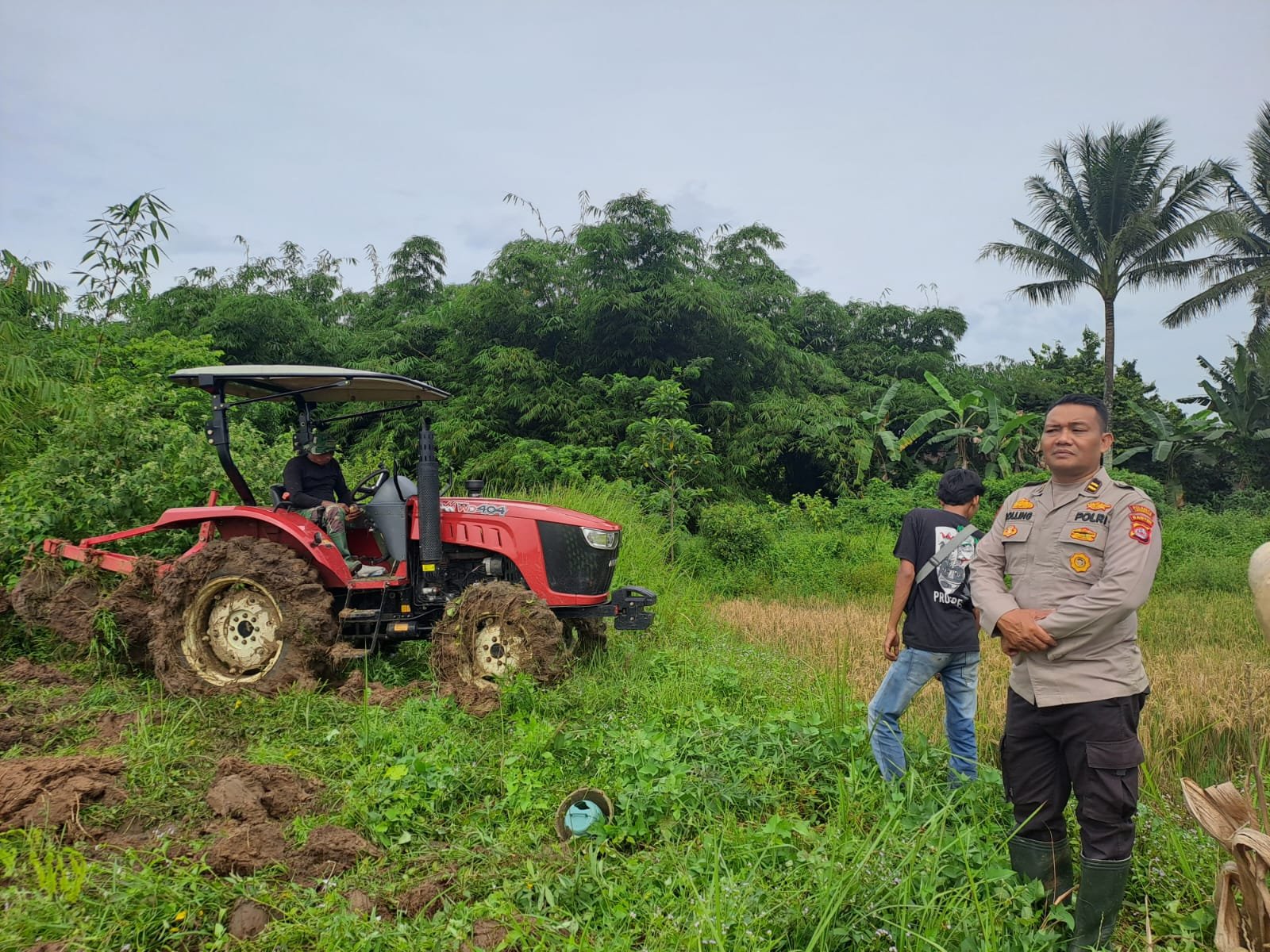 Dalam kegiatan tersebut, personel Polsek Tigaraksa melakukan monitoring langsung terhadap perkembangan persiapan lahan yang akan digunakan untuk penanaman jagung. Berdasarkan hasil pengecekan di lapangan, saat ini lahan seluas 4 hektare yang diperuntukkan bagi program 1 Desa 2 Hektar dari Desa Pasir Bolang dan Desa Matagara masih berada dalam tahap pengolahan lahan dengan proses bajak/singkal.