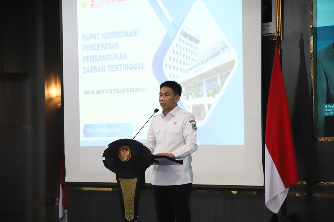 Mandala Nusantara News, Jakarta – Wakil Menteri Dalam Negeri (Wamendagri) Akhmad Wiyagus menekankan pentingnya percepatan pembangunan daerah tertinggal melalui sinkronisasi program pusat dan daerah serta penguatan tata kelola desa. Menurutnya, langkah strategis ini bertujuan untuk memastikan tercapainya pemerataan ekonomi, pengentasan kemiskinan ekstrem, serta peningkatan kemandirian desa di seluruh wilayah.